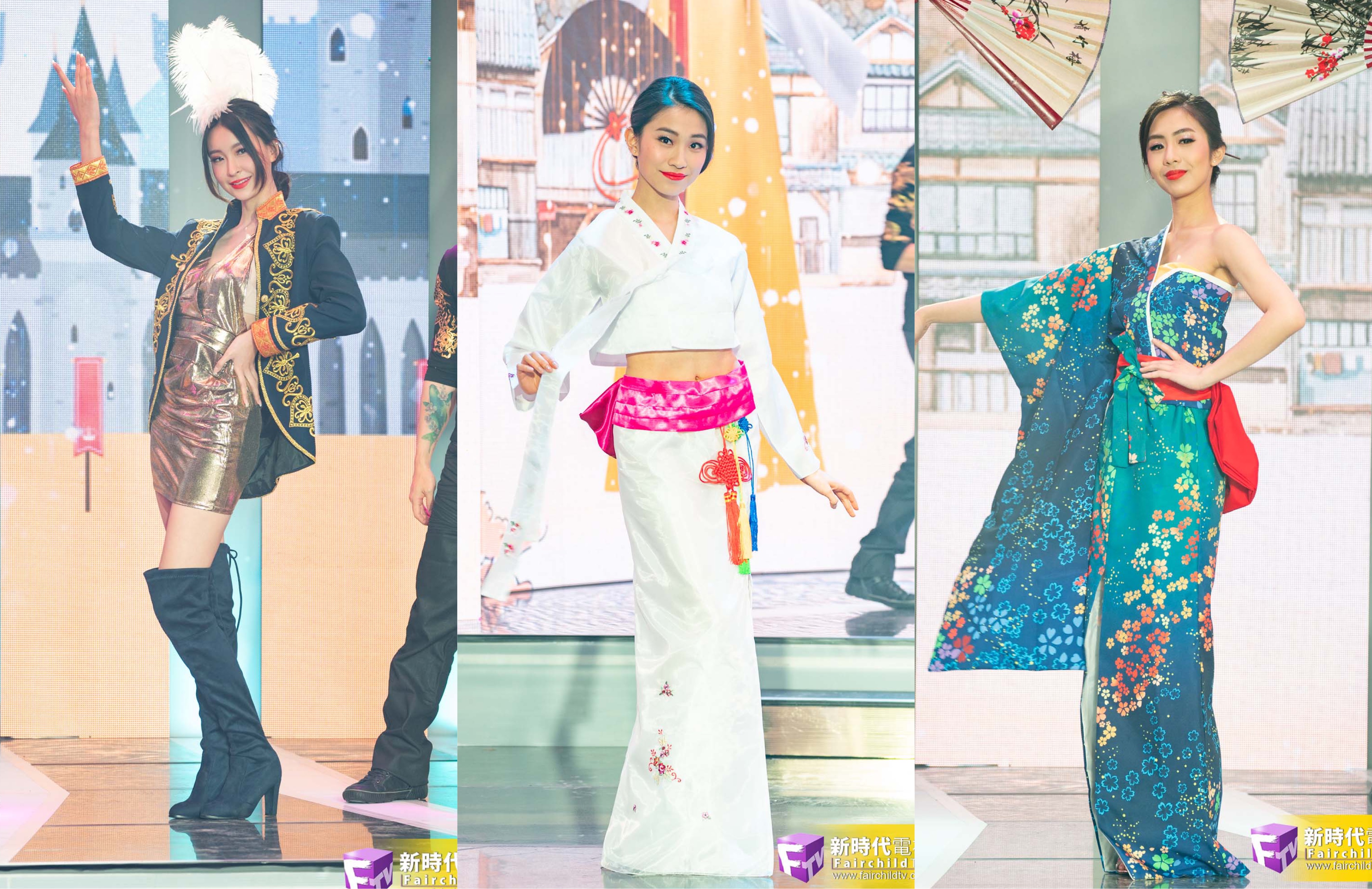值得一提的是,今年的时装秀服饰分别以出走世界为主题,观众即使安坐家中也可以感受全世界风情。1号冯子潆打扮以美国自由女神的服装为主,由她来代表她的出生地就最合适不过;2号杨柳则以热情桑巴舞登场,热情洋溢;3号温婧以非洲民众服装带领观众体验好动热情的非洲文化;4号魏诗佳一身英伦风格,充分展现女生帅气的一面;5号冯晓彤以俄罗斯士兵的造型登场,型格而酷炫;6号李尚身穿富有中国古典风格的旗袍,举手投足尽现古典美;7号区钰颐一身新潮韩国服饰登场,清新自然,别具特色;8号邝瀞甜则身穿日本樱花为点缀的和服,带领观众感受日本的诗情画意。