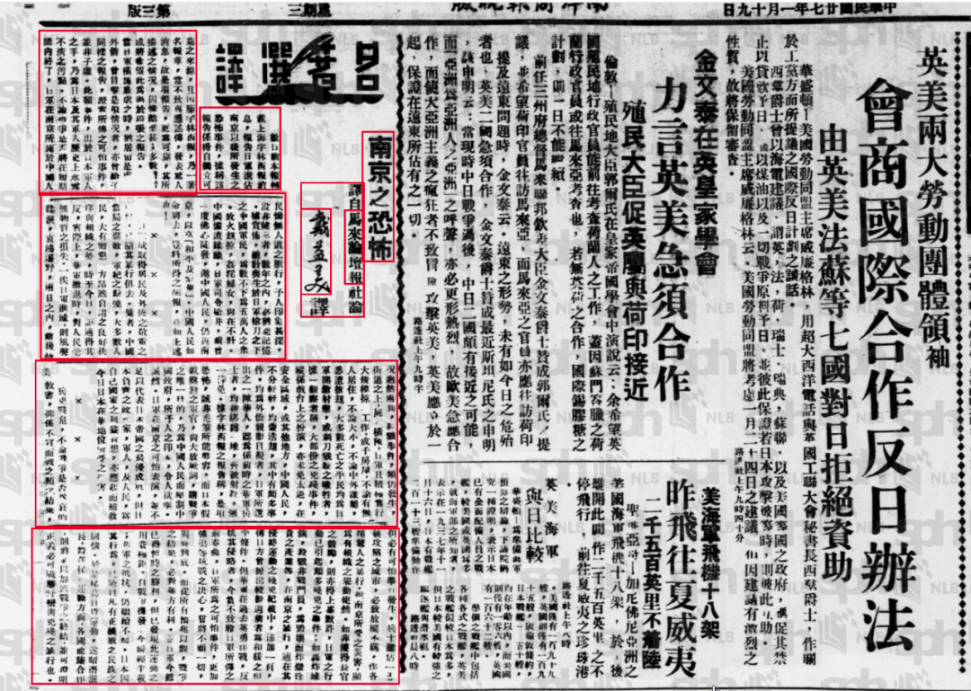 图为《南洋商报》翻译《马来亚论坛报》社论文章《南京之恐怖》。(图片来源:新加坡国家图书馆藏《南洋商报》扫描件截图)