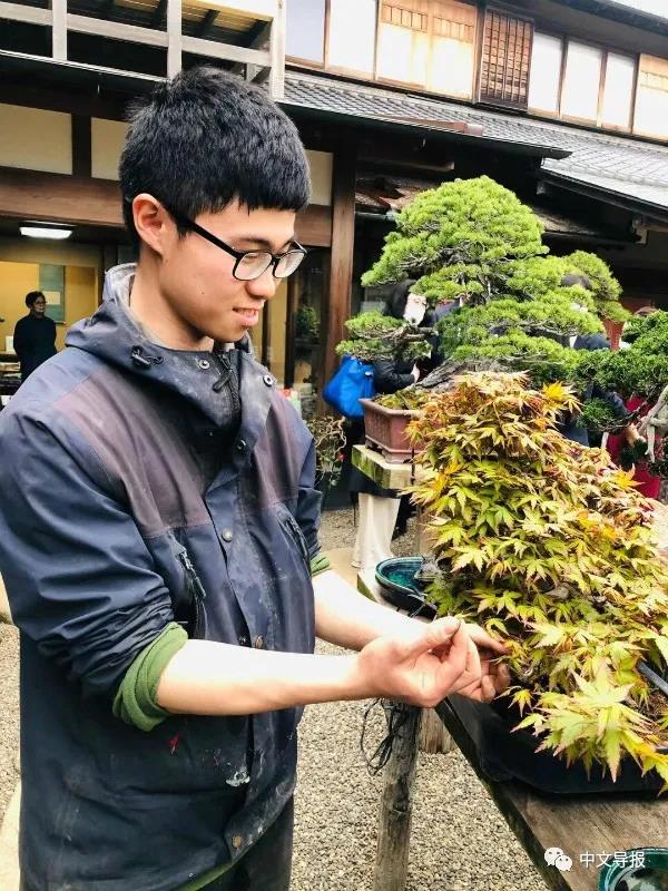 记者采访了一位来自台湾的学徒,他毕业于台湾的大学,学的是物理,理科男,只因在台北看到过小林国雄整理一盆松柏,枝叶在他手下那么听话柔顺,就好像天生就要长成那些姿态——盆栽好神奇。就这样,台湾青年就来日本学盆栽了。从早上6点工作到晚上6点,晚上是私人时间,用3个小时来按照自己的喜好而做盆栽。