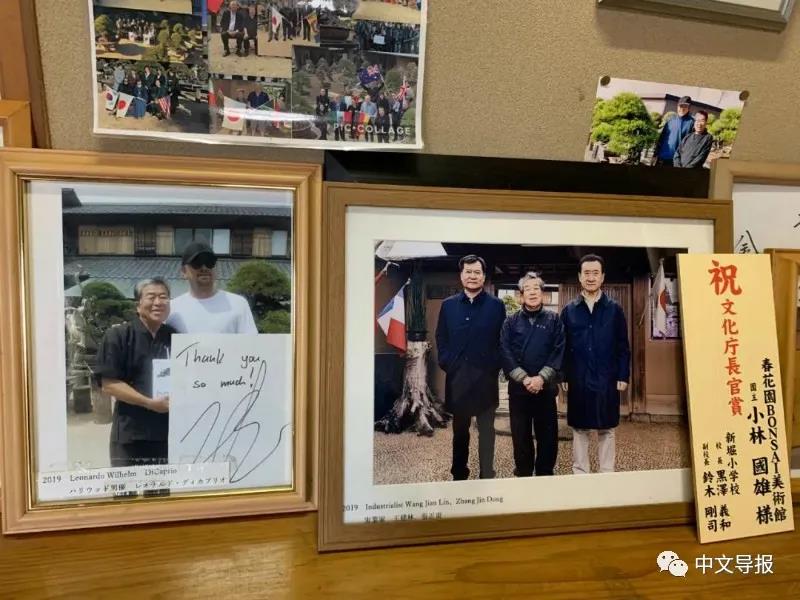 有一间茶室,墙上挂着“以文会友”,一看,竟然是川端康成的手迹。春花园盆栽美术馆神康文馆长告诉记者,旁边的盆栽正是川端康成家里的,因缘际会,有缘来到春花园。